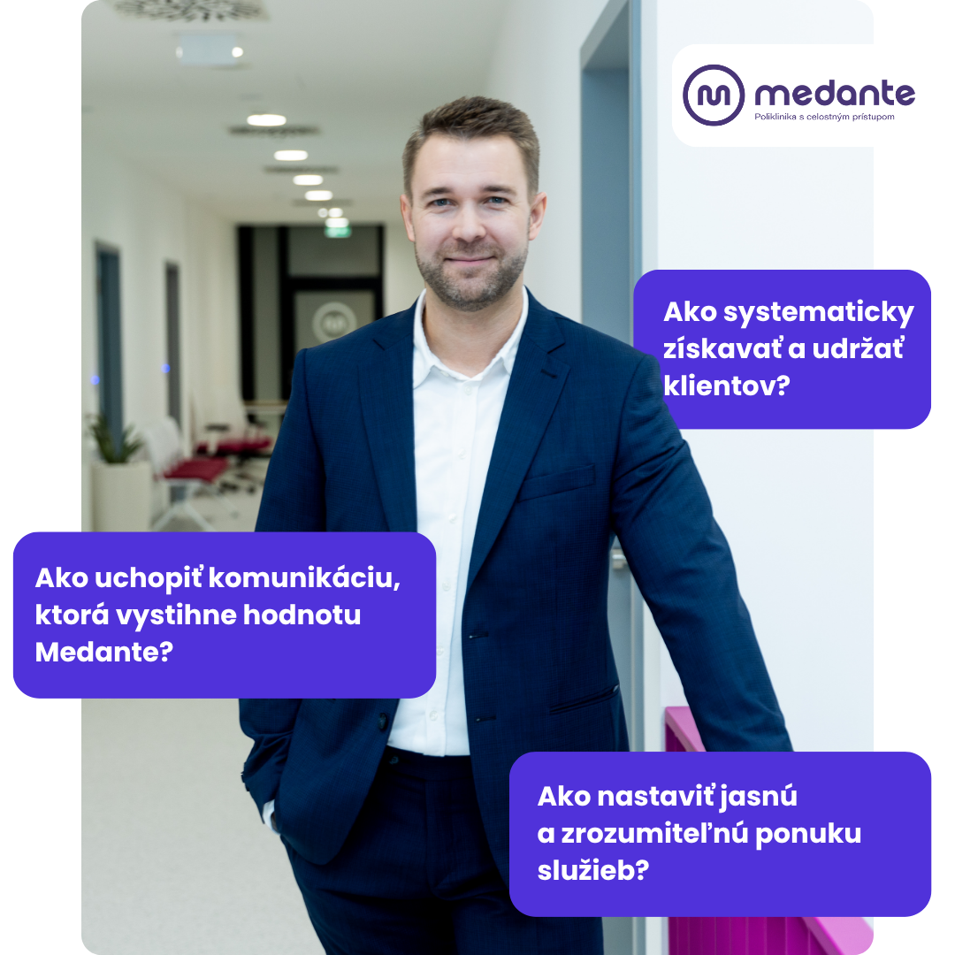 Medante dnes vystupuje ako moderná poliklinika s jasne definovaným posolstvom - človek na prvom mieste. Klinika sa neprofiluje ako miesto pre pacientov či klientov, ale ako priestor pre ľudí, ktorí chcú aktívne starať o svoje zdravie. Tento prístup sa premietol do celého komunikačného jazyka a výrazne odlíšil kliniku od konkurencie.